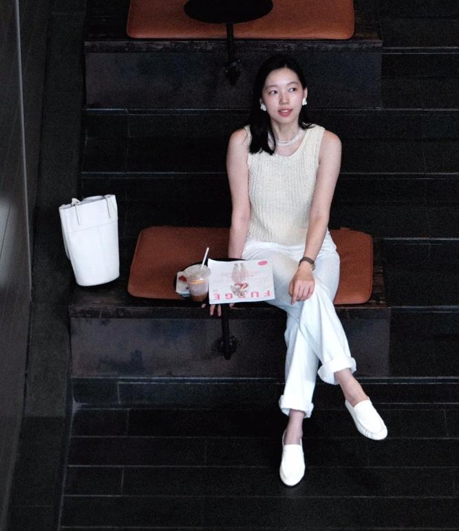 如此休閒百搭又不失幹練感的裝扮,可日常逛街,也符合職場的穿搭。