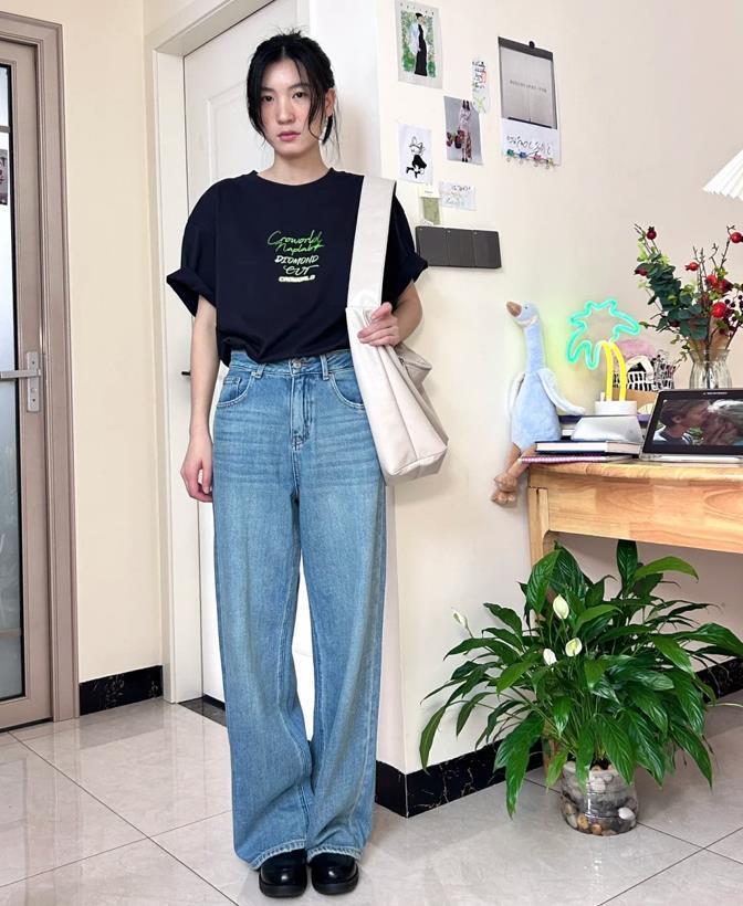 像樂福鞋這種鞋子,和運動鞋一樣,都是很百搭的,所以,無論是與西裝褲搭配,還是牛仔褲都一樣的好看。寬鬆的牛仔闊腿褲,一點都不挑身材,腿粗、腿型不好看的都能穿,簡單配一件短袖t恤,夏日的穿搭就是要簡單些纔行。