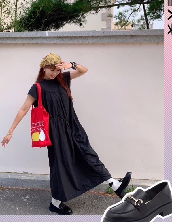 不同顏色的樂福鞋與裙子組合,也可以打造出你想要的風格,黑色樂福鞋配各種顏色的裙子,都不容易出錯,簡約又不失高級感。