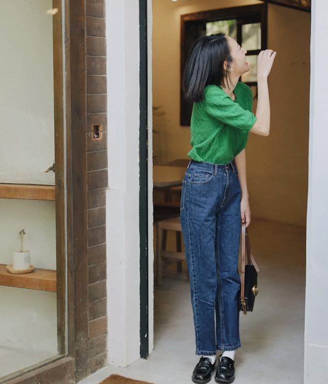 真的永遠都穿不膩的樂福鞋+牛仔褲,這兩種單品組合在一起,就是時髦耐看,褲子版型和長度,需根據自己的身材來選擇,這樣才能穿得好看。至於上衣的搭配,牛仔褲可以配的款式有太多了,短袖t恤或者襯衫,還有針織短袖都行。