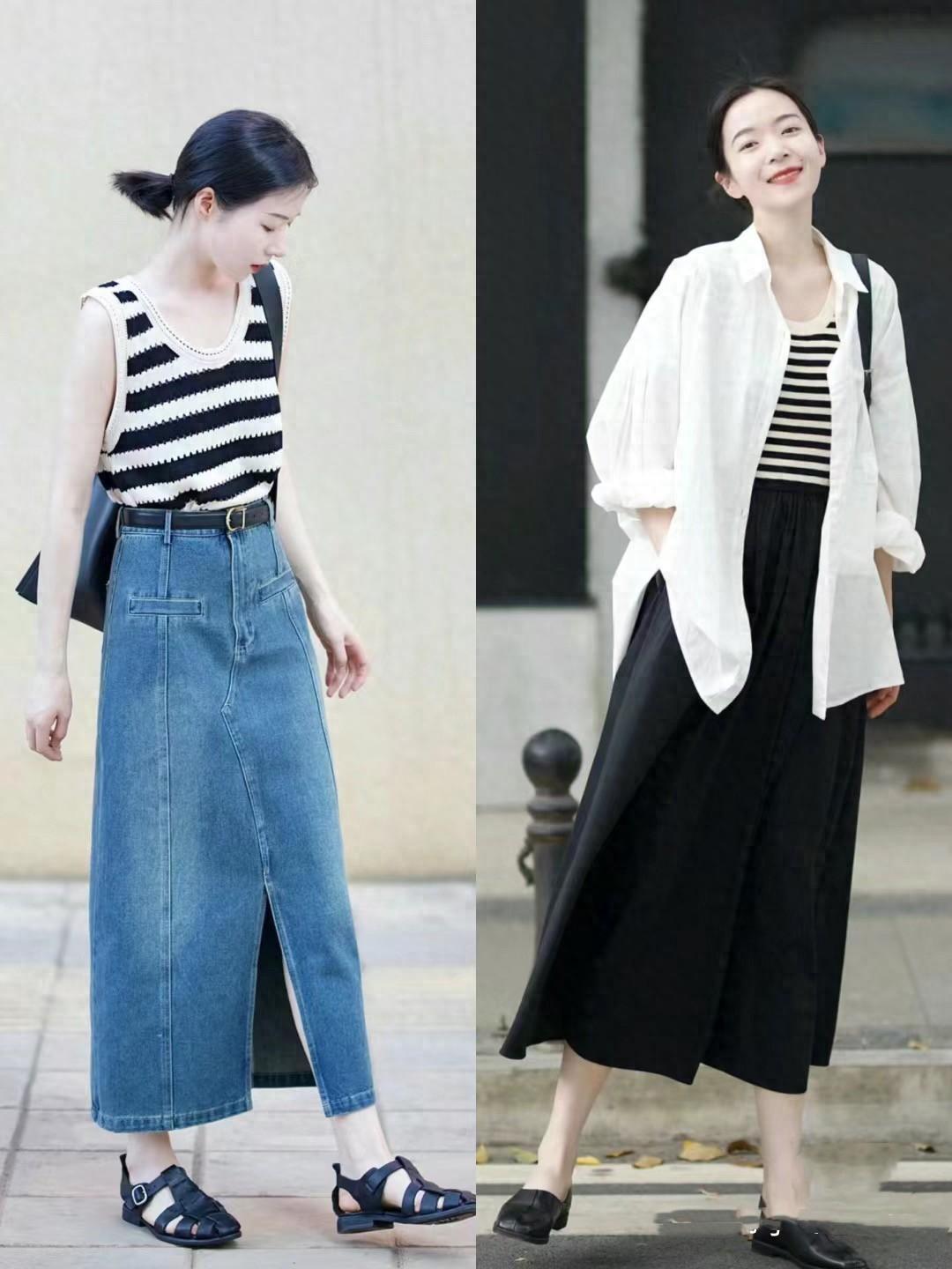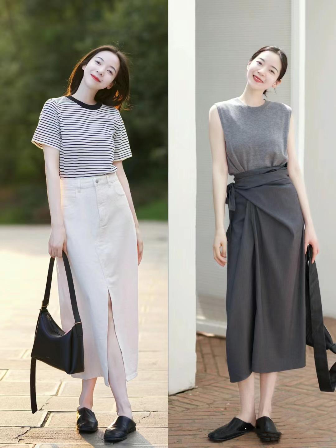 高腰的A字形半身裙,可選項也是非常多的。如果想要一種更經典、顯瘦、又特別耐穿的單品,那麼一定是推薦大家選擇高腰的黑色半身裙。