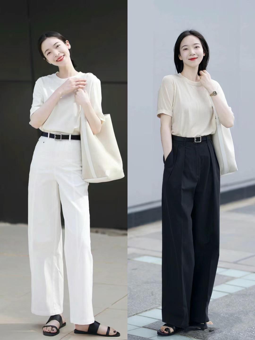 不管是黑色高腰長褲、還是白色高腰長褲,都擁有一定的時尚氛圍。簡約又高級的色系,不管怎麼搭配都不會出錯。白色高腰長褲更清爽、黑色高腰長褲更顯瘦。