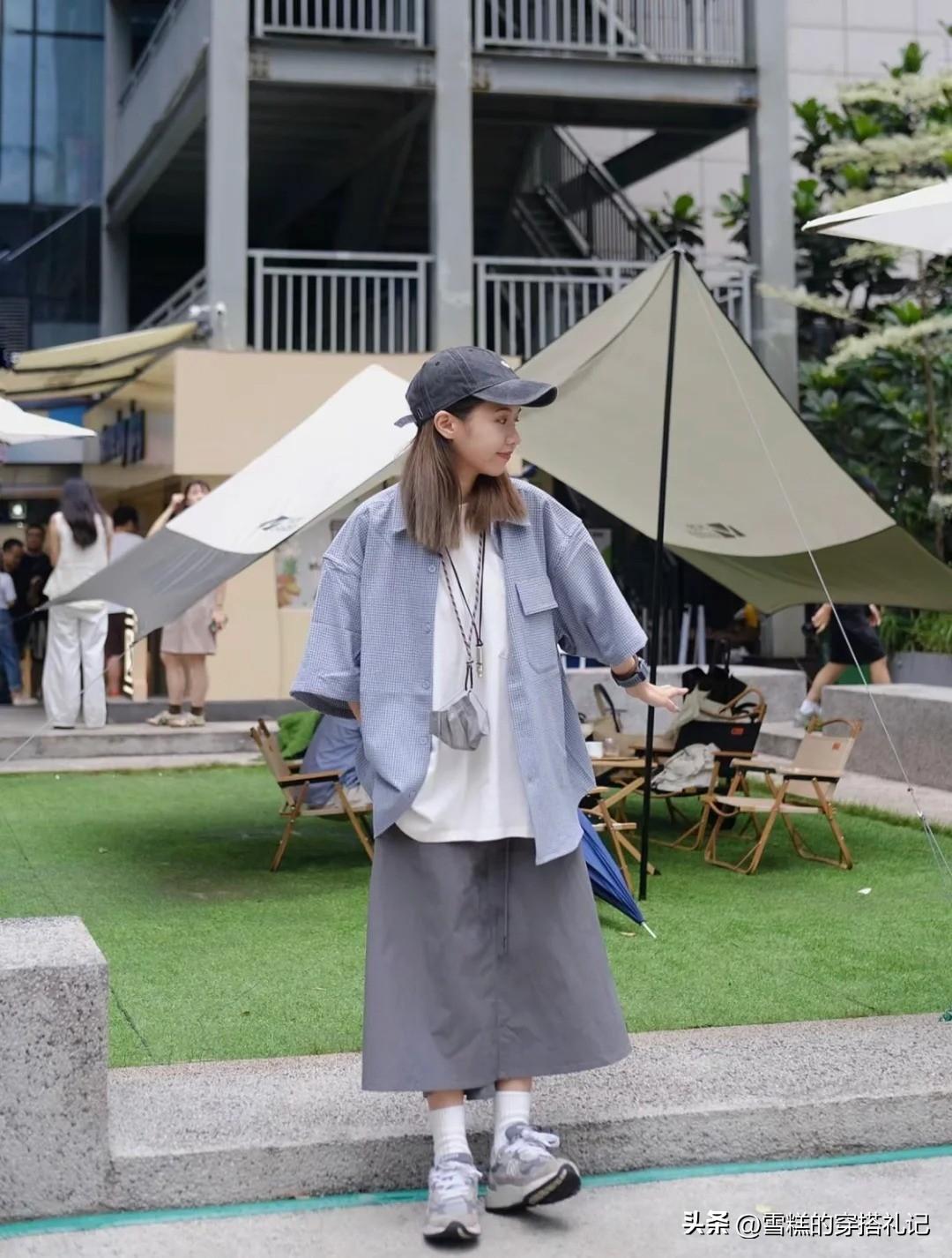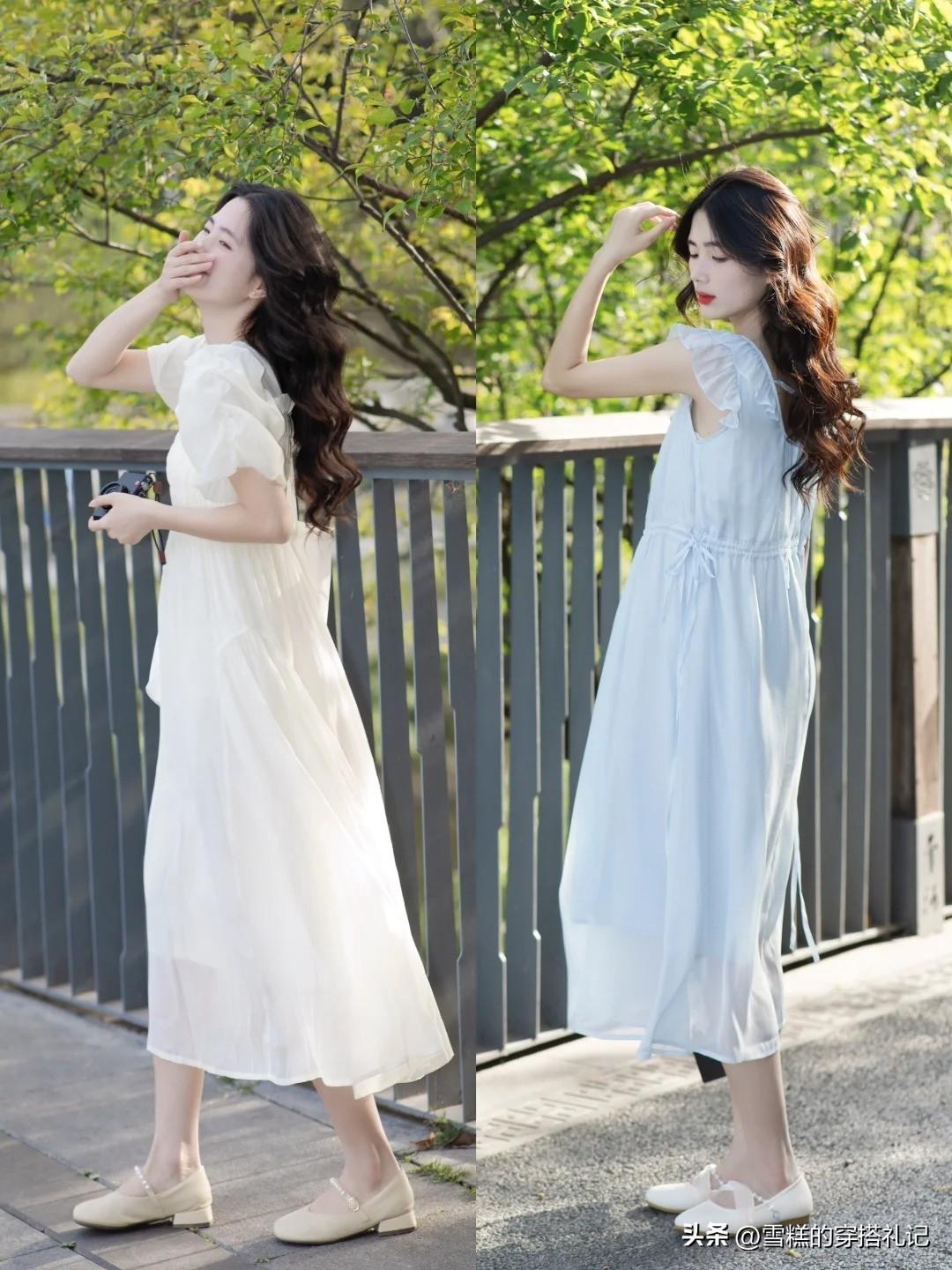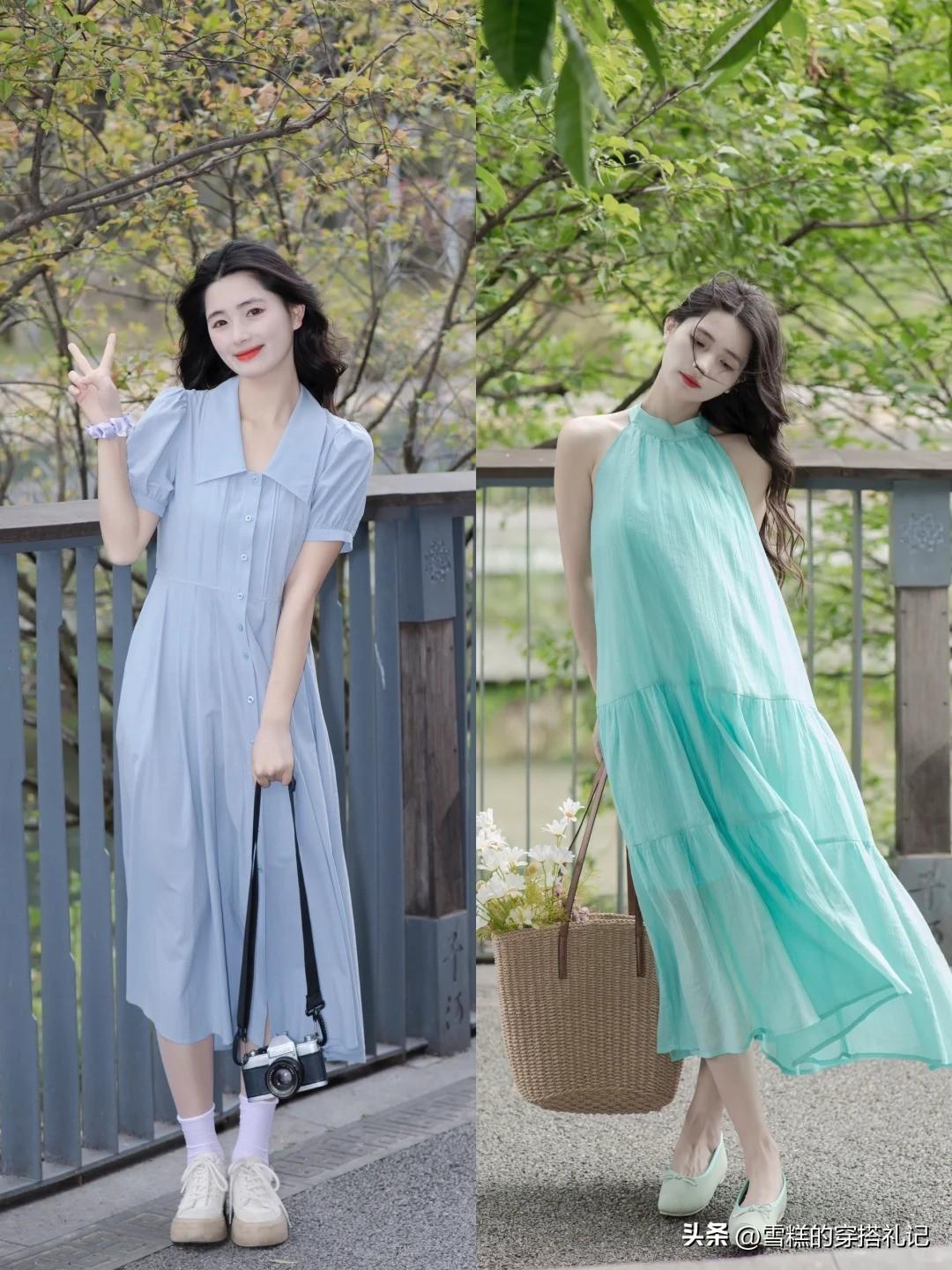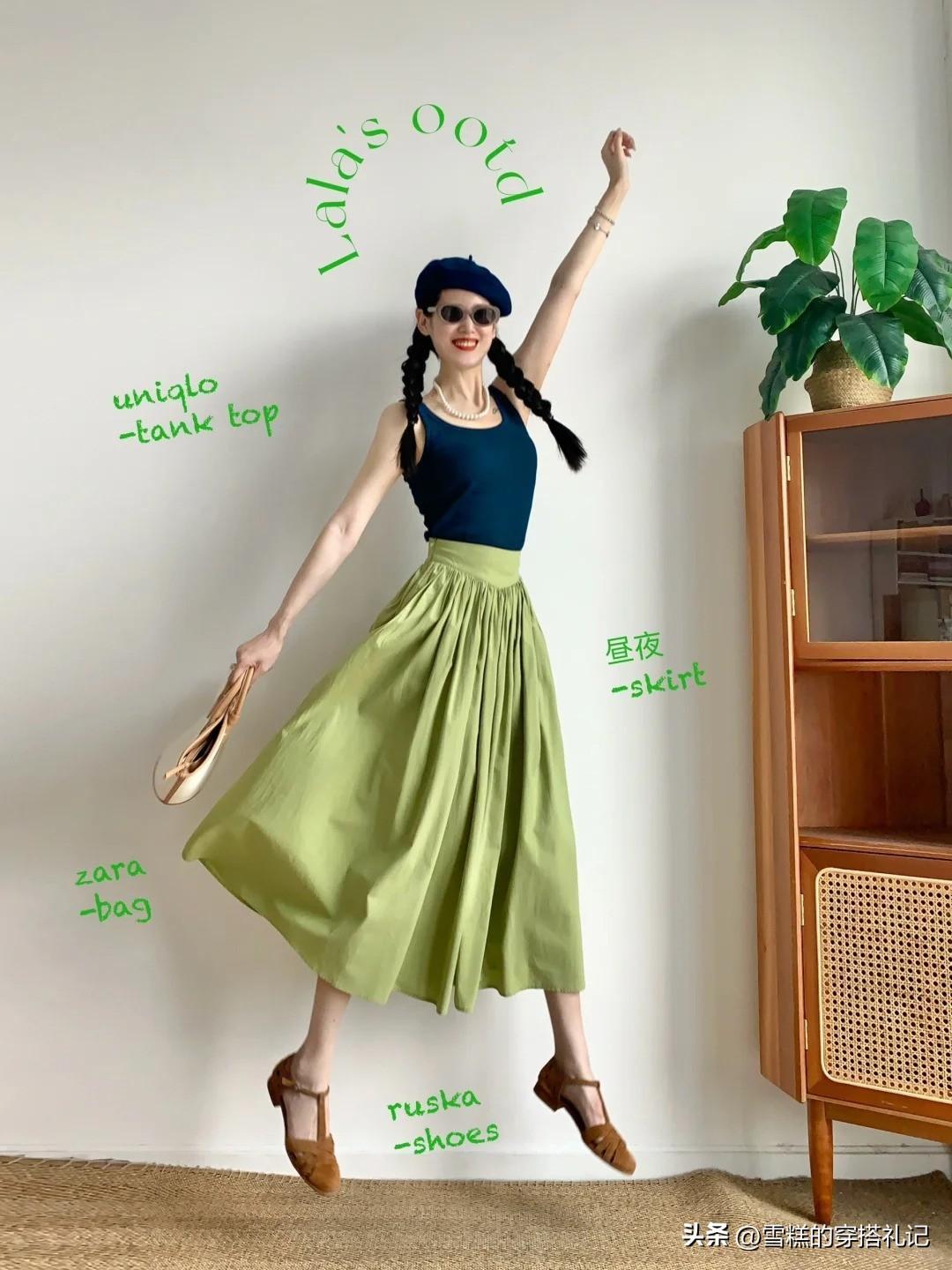 #純色“及踝裙”# 一件由單一色調組成的裙子,很能滿足夏日裏清新溫柔的質感。我們可以根據需要進行一些袖口、領口以及腰部的元素疊加,有其是本身裙筒比較寬鬆的裙子,它們的加入會有利於打破枯燥,製造視覺上的立體感。