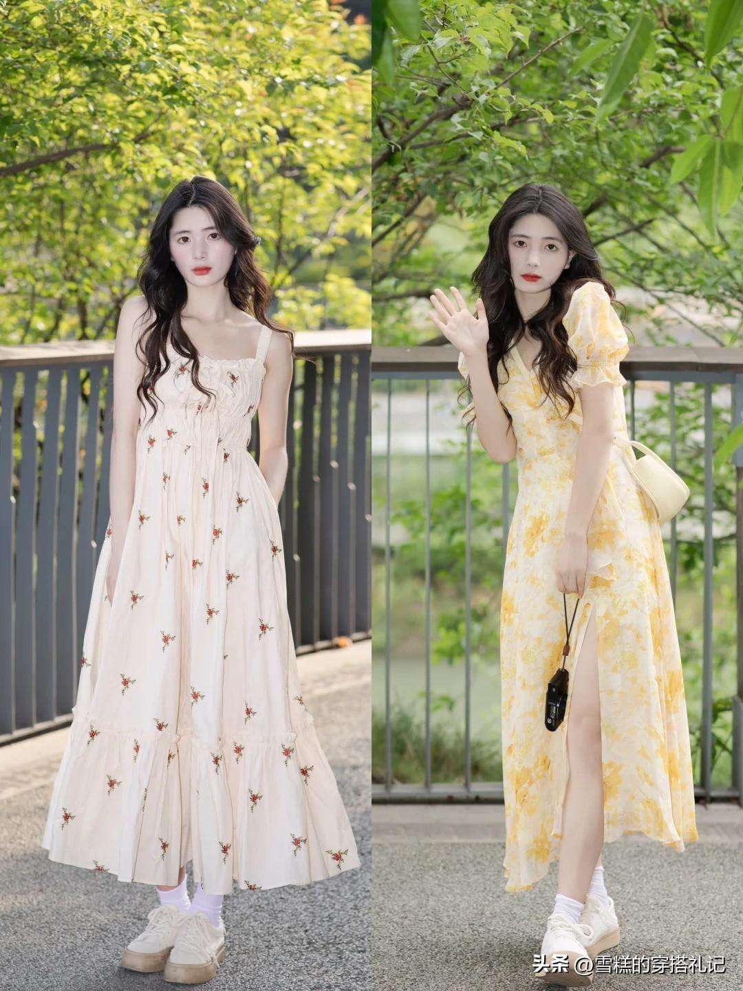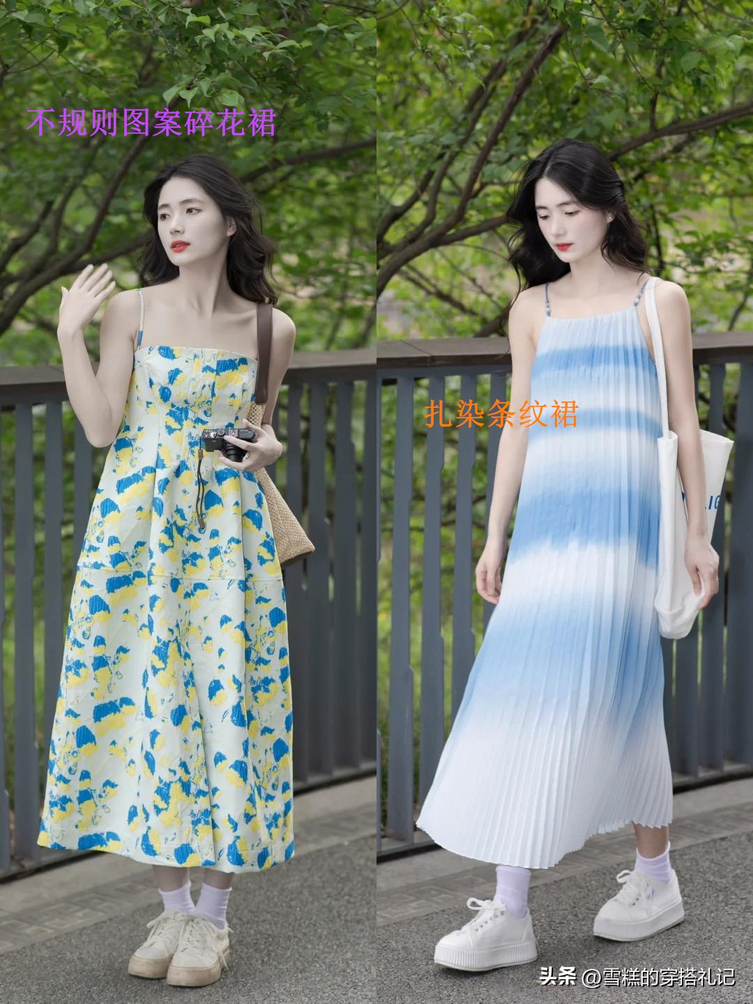 其實和褲裝追求的簡約高級感相類似,夏季裙裝的搭配過程中設計元素也不需要太多和繁瑣,簡簡單單的一個小開叉,經典而不密集的波點等,就可以很好滿足夏日裏追求的清爽和減齡味道,幫助咱們勾勒出更多更洋氣的味道。
