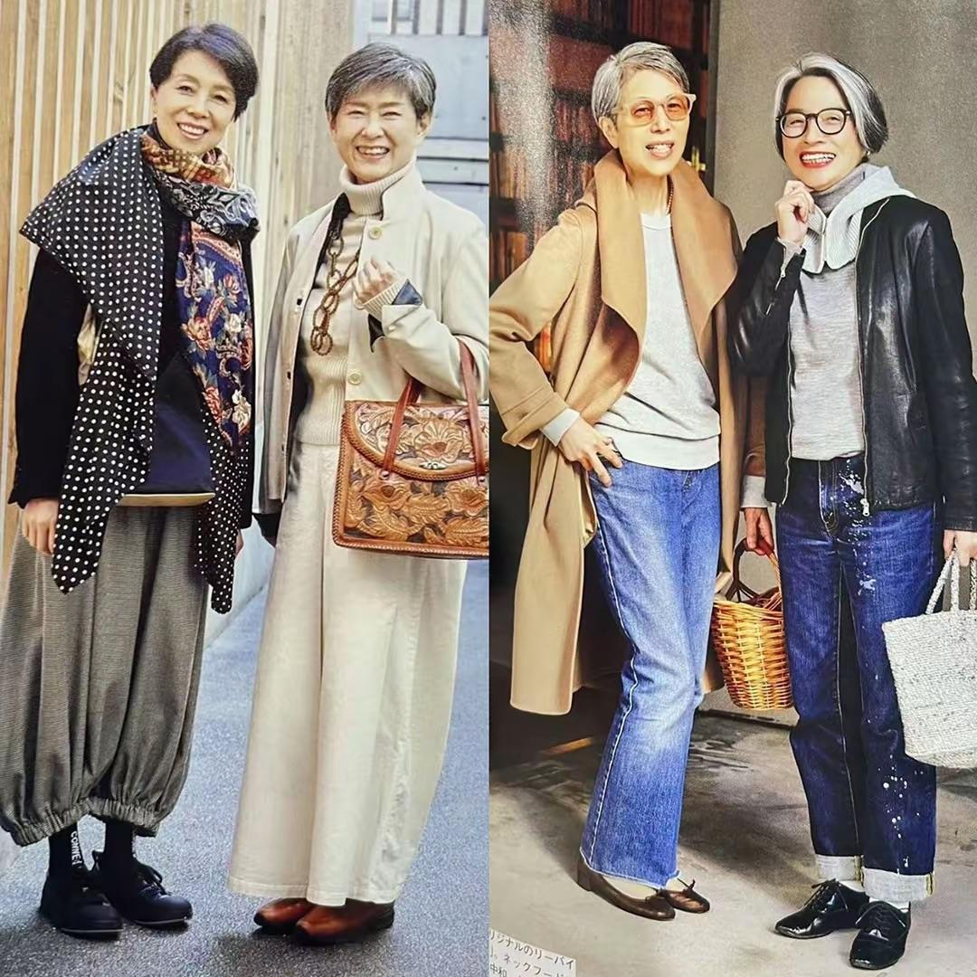 即便是上了年紀,也更喜歡普通的衣服。看似日常且基礎的服裝,在她們巧妙的搭配下,竟然也優雅時尚。