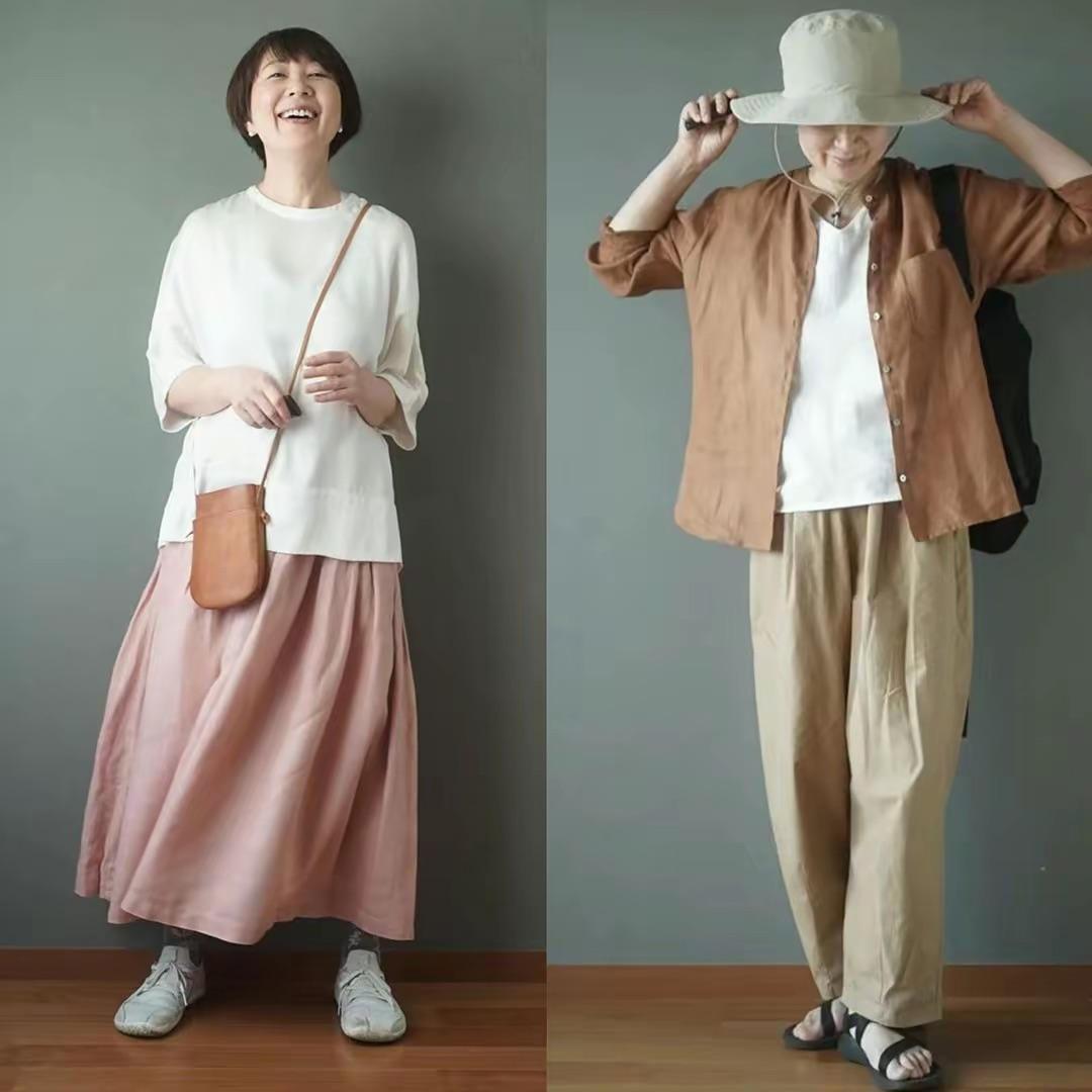 從日本大齡女性的穿搭中,我們可以更清晰的明白。基礎款的服裝,才更加耐看。就像是夏天裏的T恤、或者襯衫、半身裙,總是無可取代。