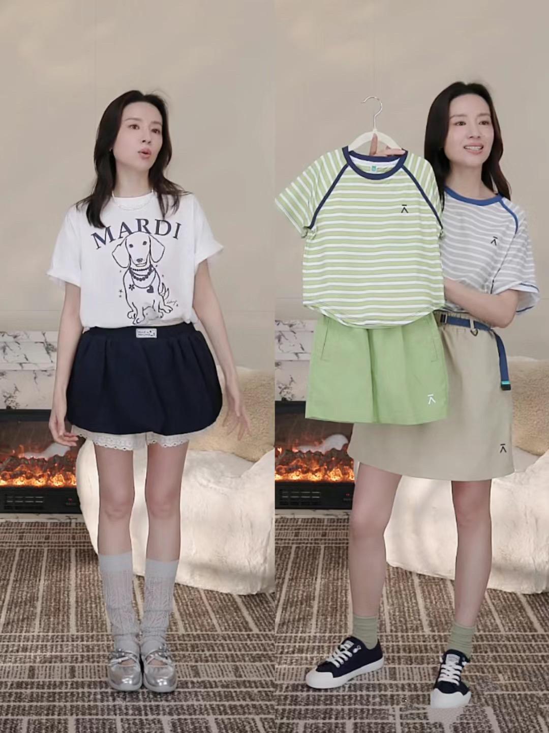 簡簡單單的白色字母印花T恤,搭配運動風或者甜美風的短褲,都很減齡。如果你也喜歡減齡穿搭,可以像董潔一樣嘗試字母印花T恤的搭配。