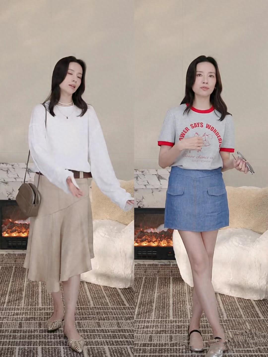 我們可以參考自己的風格,來選擇適合自己的穿衣方式。活潑清爽一點,就選擇撞色的T恤,搭配牛仔短裙,洋溢着青春活力的美,格外的減齡。