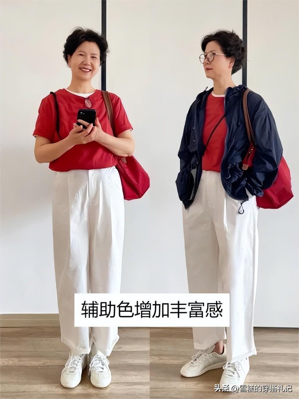 顏色更加出挑的造型,帶給我們更豐富的體驗,也讓我們到老年的時候穿衣選擇更加多樣化,同樣是上衣的搭配,趙雅芝就會靈活的去選擇紅黃藍綠這些鮮豔色彩作爲提亮。相比於黑白灰的穿搭,自然要顯得視覺衝擊感更足,其實日常穿搭也是很實用。