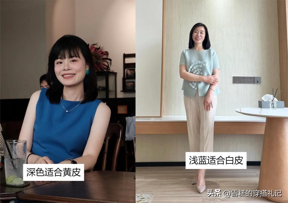 飽和度比較高的藍色,其實比淺藍色更顯貴氣,這也是考慮到了不同年齡段女人的穿衣需求,中老年女性需要色彩的穩重感。那麼,克萊因藍色的飽和度就可以呈現出視覺上絕對顯白特點,而且大面積穿搭更顯大方感。