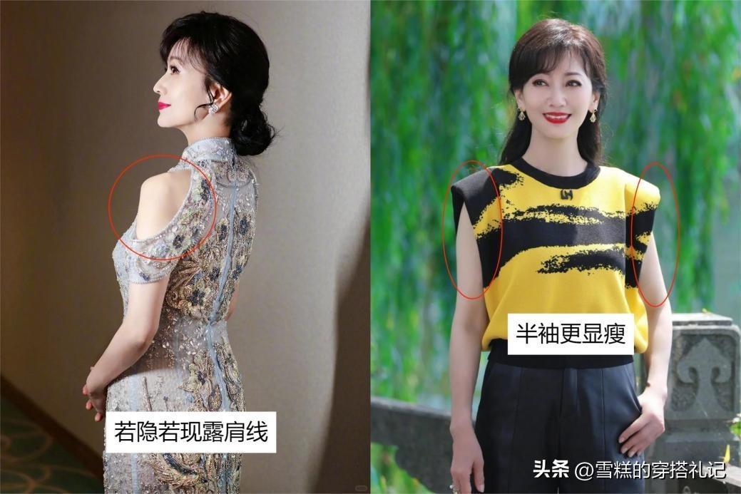 夏季比較清爽的短袖或者是無袖款式的穿搭,都是讓手臂和肩膀線條形成了完美對比的。趙雅芝的身材比較纖細,所以穿短袖或者是緊身款式的無袖上衣都比較好看,如果你的手臂有拜拜肉的話,半袖的款型會更加容納身材的短板,手臂曲線也可以延伸的到位。