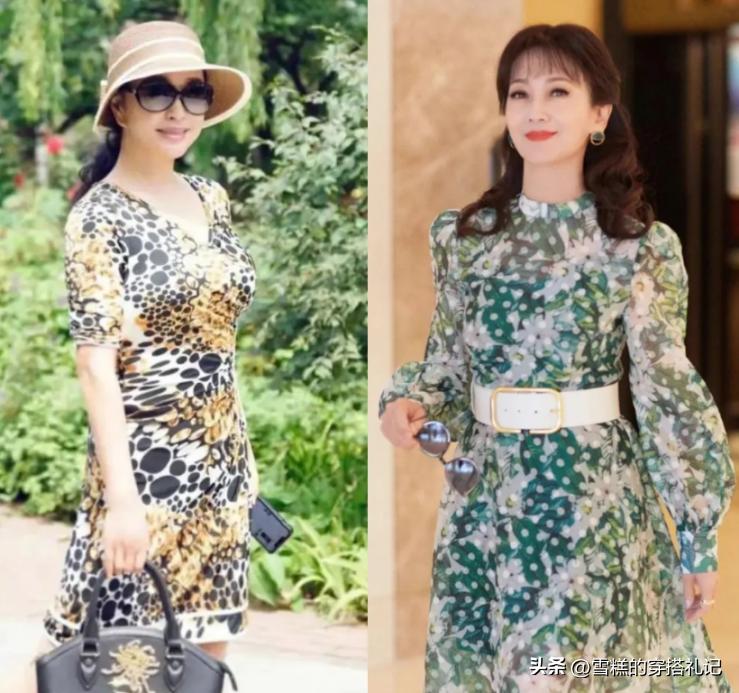 用適當的花紋去優化奶奶妝的造型,其實整體的氣質會更加的顯年輕,並不是排擠花色的服裝,而是很多花紋設計本身就低廉。細密的碎花很容易讓線條顯得膨脹,一穿上身就顯得老氣,所以我們儘可能選擇條紋感比較強的粗花紋,增加花紋之間的空隙會顯得更大氣。