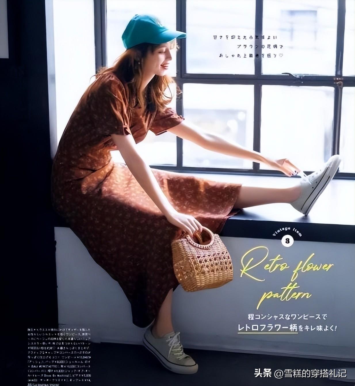 選擇一雙簡約的帆布鞋,讓它成爲穿搭中的輔助單品。搭配一條咖色的碎花連衣裙,中性色的配色帶有溫暖和舒適的氛圍感,結合碎花的設計,可以讓人輕鬆感受到日本女性的時尚魅力。連衣裙長度過膝,力求將舒適性與優雅感完美融合。頭戴一頂鴨舌帽,增加俏皮感,顯得活力十足。