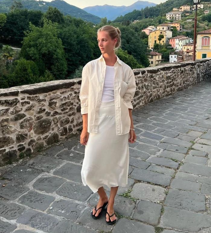 襯衫和半身長裙的搭配,可是最容易打造出高級感的,也非常不失氣質,襯衫可以單穿,也可以進行疊穿,日常最常見的就是與背心進行疊穿一起,既清爽涼快,又能展現出小性感。
