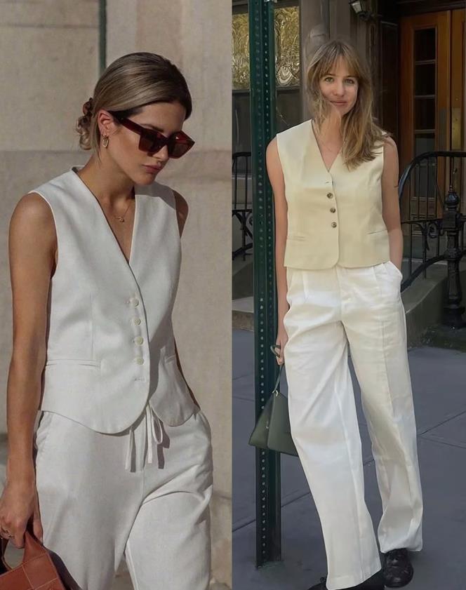 今年夏天,給自己入手一件馬甲吧,像西裝馬甲就是當下很流行的款式,這種馬甲直接單穿就行,深v領口的設計,不僅拉長脖子線條,還能打造出縱向拉伸的既視感。