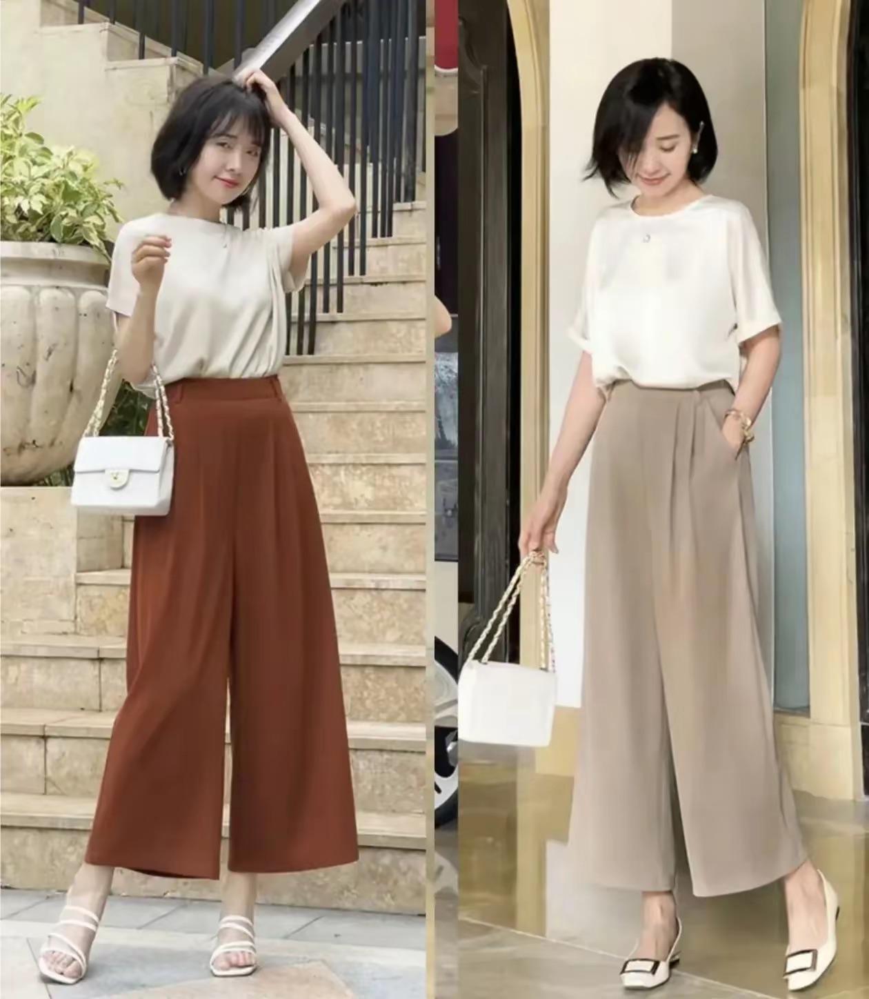 如果不僅個子小、腿型也比較粗的話,建議大家選擇闊腿的九分褲。夏天裏的九分闊腿褲,包容性更強。