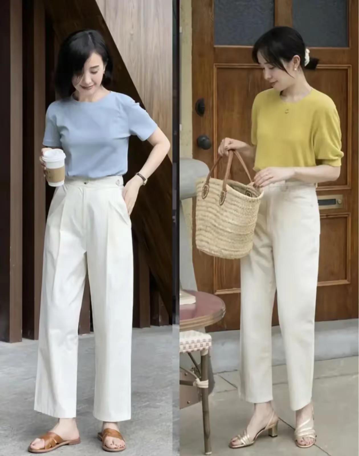 夏天裏的煙管褲,一定要選擇比較輕薄的面料。相對輕盈的面料、在夏天裏穿起來也不會那麼悶熱。