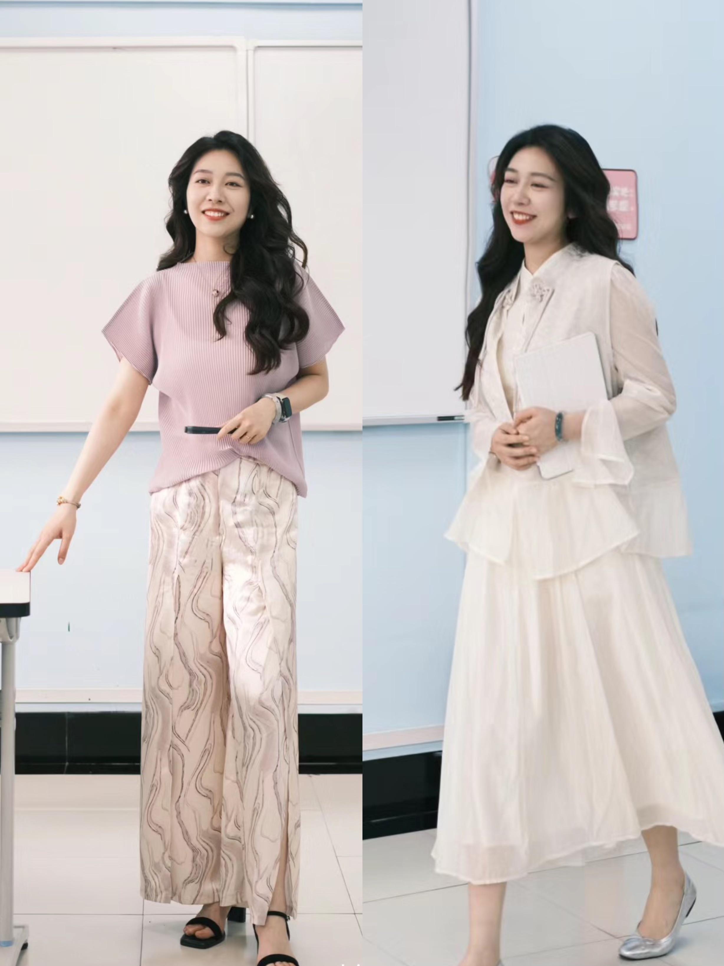 偶爾想要放縱自我,也可以嘗試個性時髦的穿搭。比如印花的闊腿褲、或者新中式風的套裙。總是會在人羣中,格外的醒目。