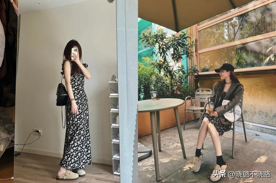 如果你對於花色擁有一定的執念感,那麼長裙其實也可以去匹配一些比較清新的碎花紋,此時,如果去搭配色彩鮮豔的皮鞋或者是樂福鞋,就會讓整套造型顯得很凌亂,所以純色系的勃肯鞋又能夠展現出造型繁簡相襯的優勢,時尚感和休閒感都拿捏的恰到好處。