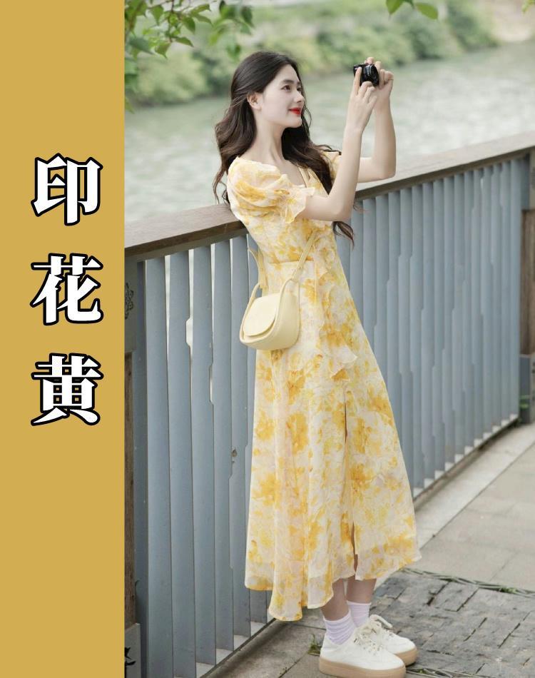 - 印花黃色適合夏季的海邊度假或戶外活動,爲整體造型增添活力。想象一下,在藍天白雲下的海灘上,身着印花黃色連衣裙的你,將會成爲一道亮麗的風景線。