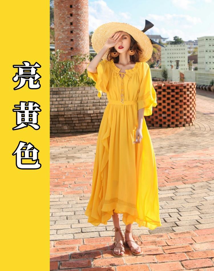 黃色作爲一種明亮且充滿活力的色調,其在連衣裙運用能夠爲整體造型帶來生機與活力。
