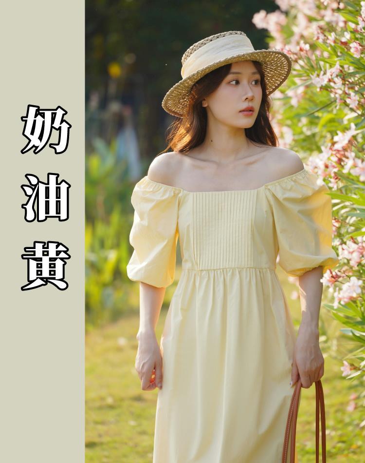- 奶油黃讓人感到溫馨與舒適,這種顏色的連衣裙非常溫柔。