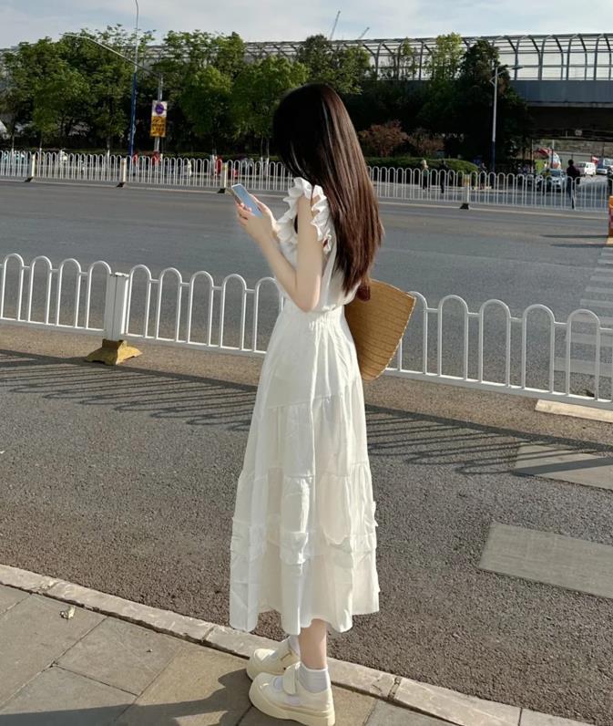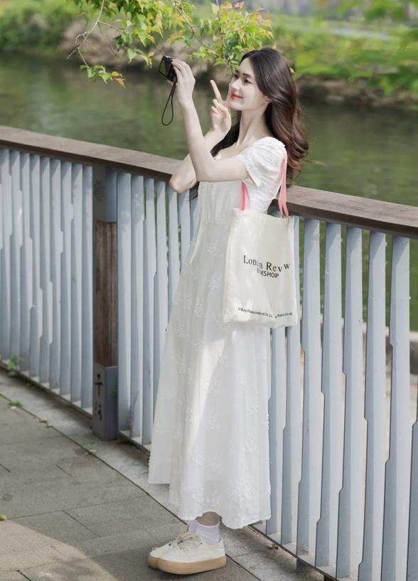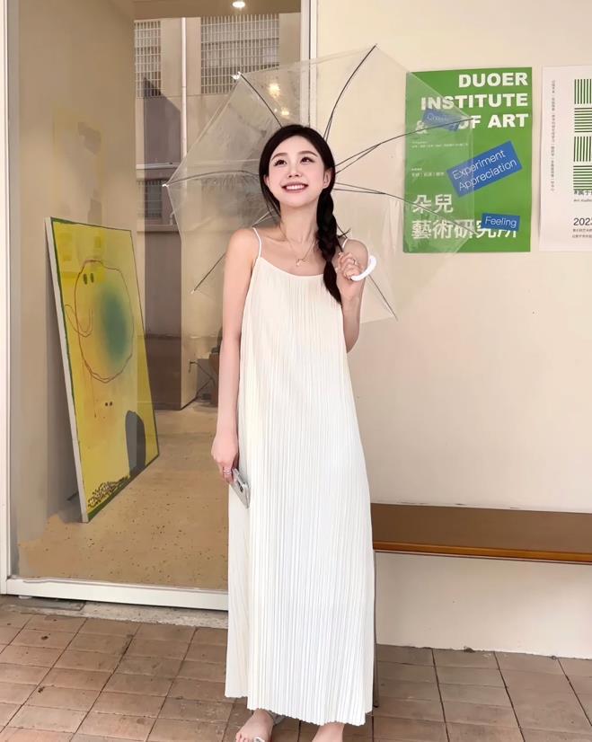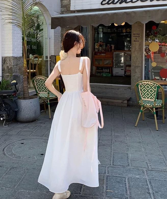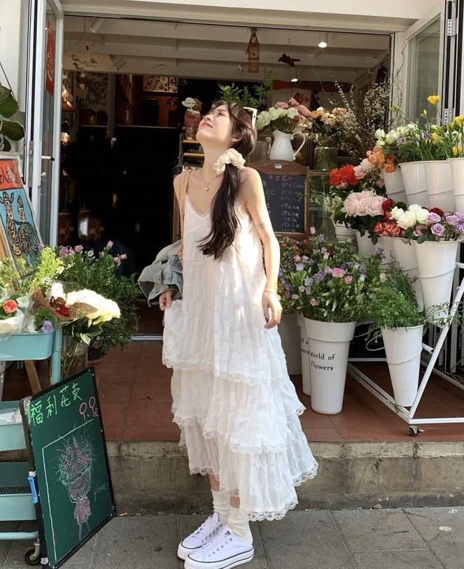 白月光蛋糕長裙也太仙氣了吧,真的好美呢,吊帶款式的白色裙子,可以在約會逛街,或者是度假的時候穿,小個子女生也能輕鬆駕馭的。選擇一雙帆布鞋來配,瞬間又多了幾分休閒和舒適,溫柔又自帶仙氣感。
