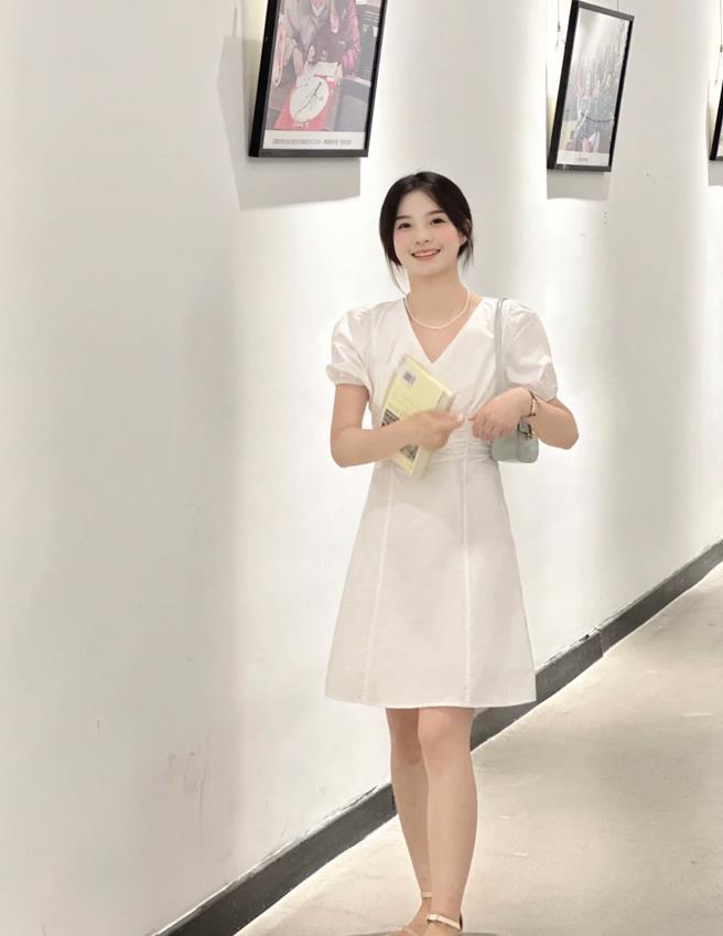 V領的衣服,對於一些圓臉、方臉的女生就是非常友好的,還有就是肩寬微胖的女生,穿起來後可以把整個人的身材比例都進行優化,視覺上看起來也非常顯瘦。乾淨的白色連衣裙,搭配起一雙涼鞋,真的美極了。