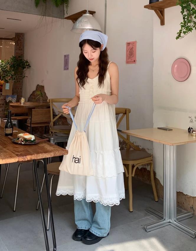 吊帶裙配牛仔褲的疊穿,真的太好看了啊,這種裙子+褲子的組合,想要在搭配上進行創新的姐妹,不妨試試看。白色吊帶裙,下身是一條牛仔褲和黑色小皮鞋,韓系範滿滿的。
