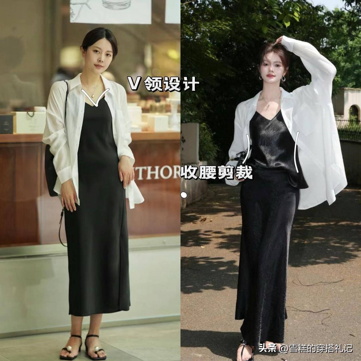 攻略1.V領吊帶醋酸裙,襯衫敞開穿