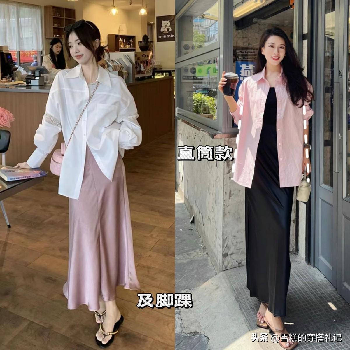 第一種:醋酸裙+襯衫(知性優雅於一體)