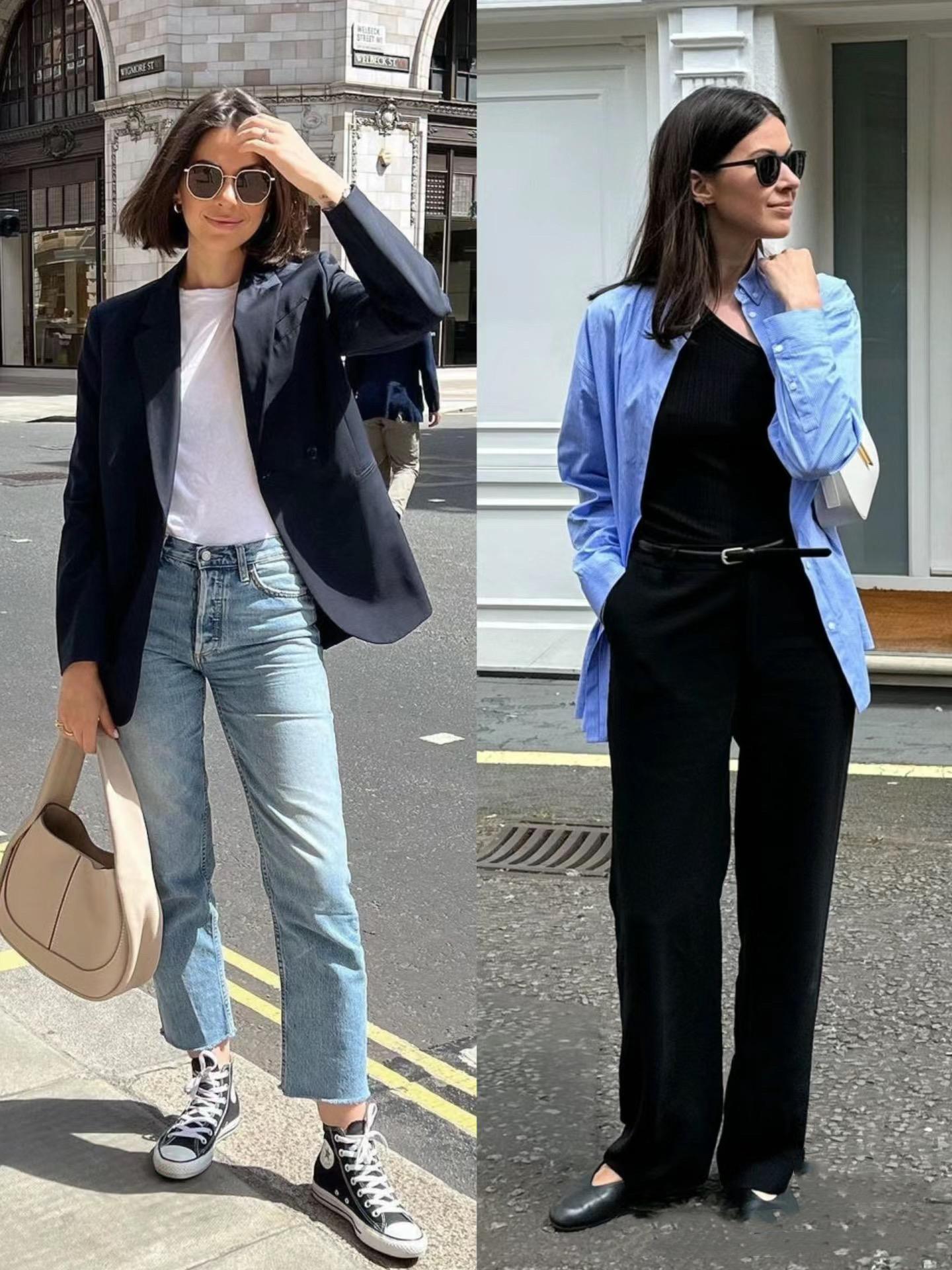色不過三、並且以基礎色爲主,纔可以讓我們的穿搭表現出清爽高級的姿態。寬鬆的襯衫,可以搭配連體褲來穿着。藍黑配色、也是非常的高級。