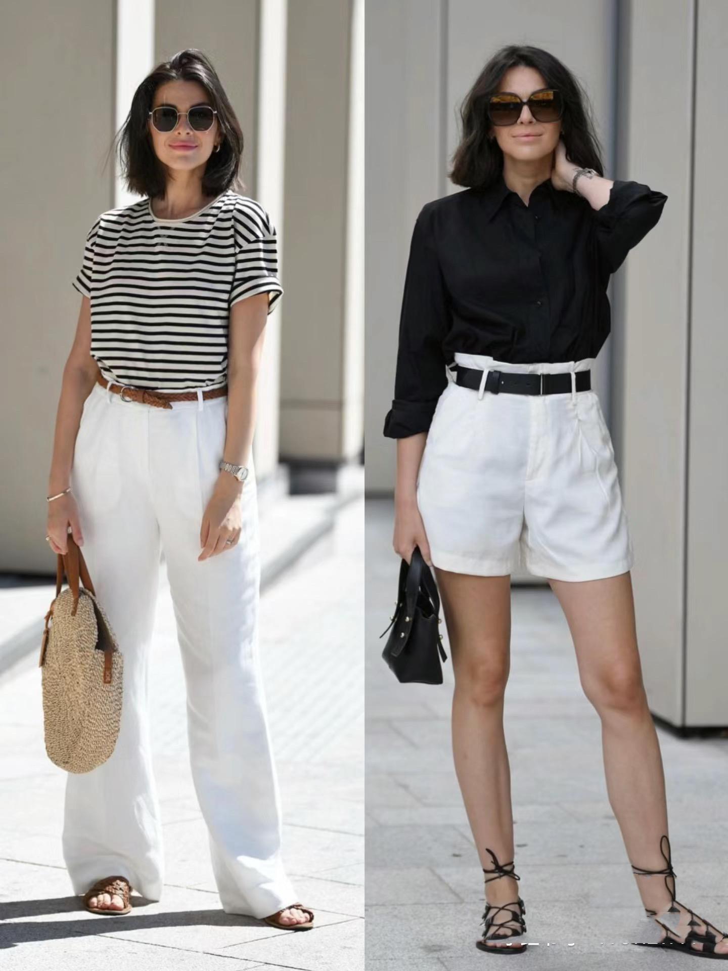 夏天裏的白色T恤,最是清爽大方不挑人。我們可以用白色T恤配黑色西裝短褲,經典的黑白配簡約又高級。通勤、休閒、日常都可以穿着。
