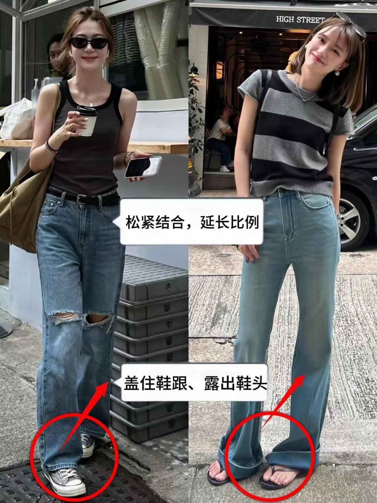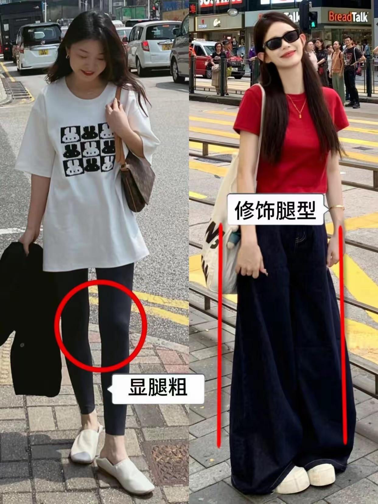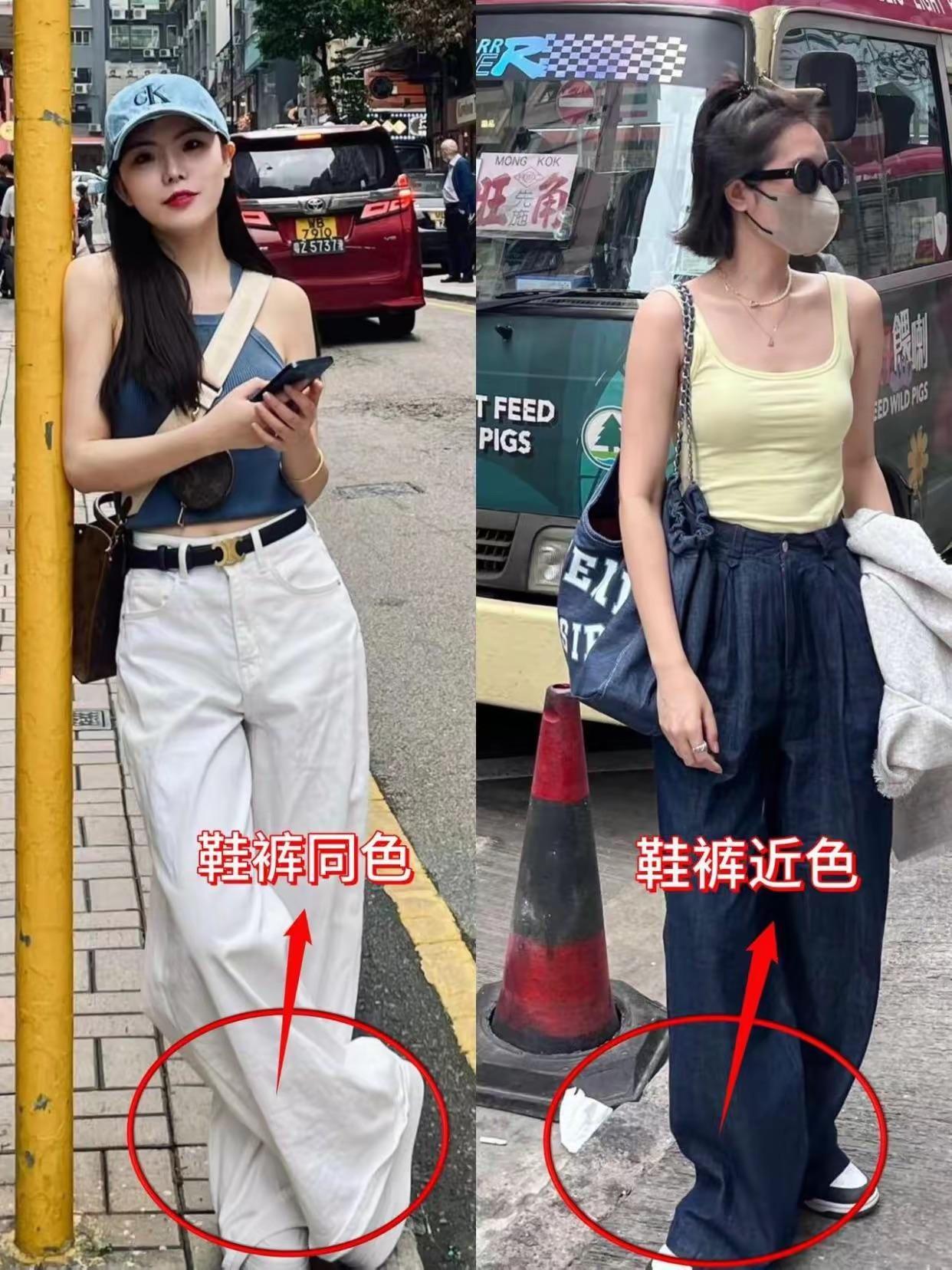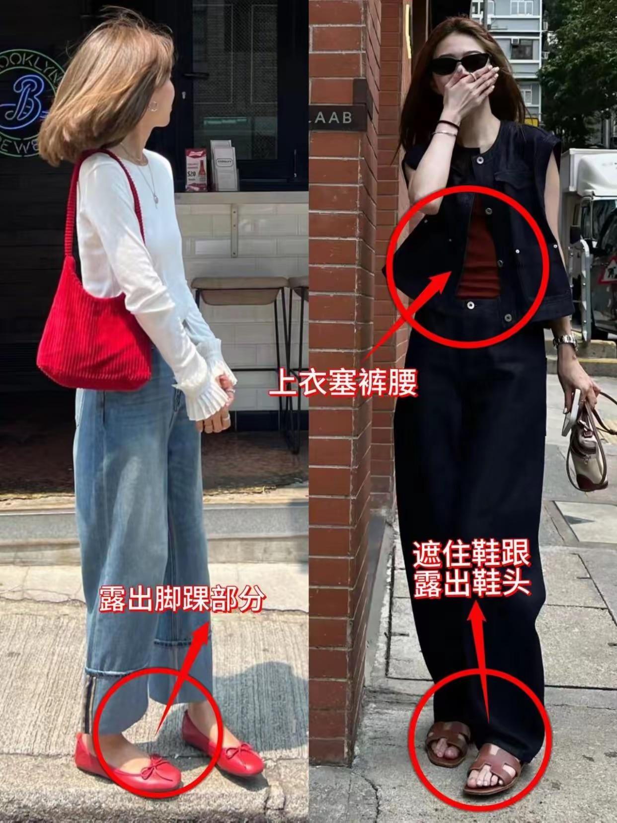 同樣是闊腿褲+寬頭鞋的穿搭,身高不同搭配重點也不同。個子不夠高、就更需要謹慎,學會揚長避短。