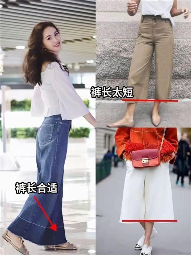 闊腿褲,本就是褲筒相對寬鬆的褲子。褲子太長,就會顯得拖沓、不夠利落。褲子太短,就容易形成視覺上的截斷感、顯得身材五五分。