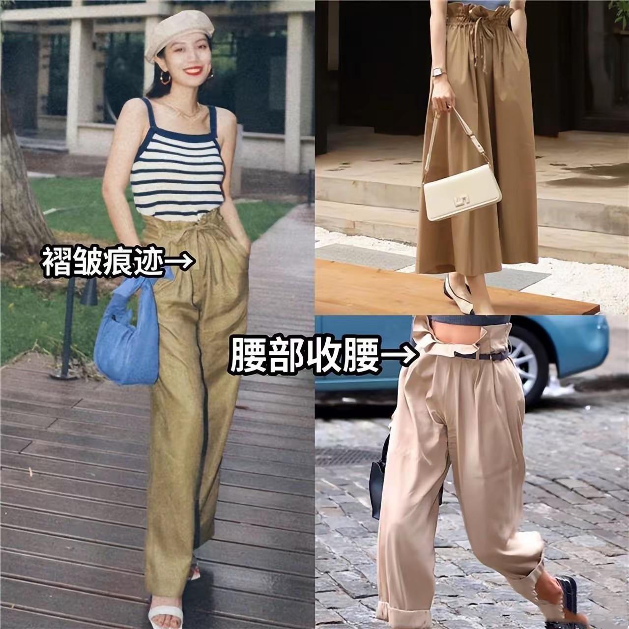 香港女生穿闊腿褲的時候,就懂得更好的揚長避短。利用腰部的褶皺,自然修飾微微隆起的小肚子。不僅隱藏了腹部的小肉肉,還擁有了自帶的時尚感。