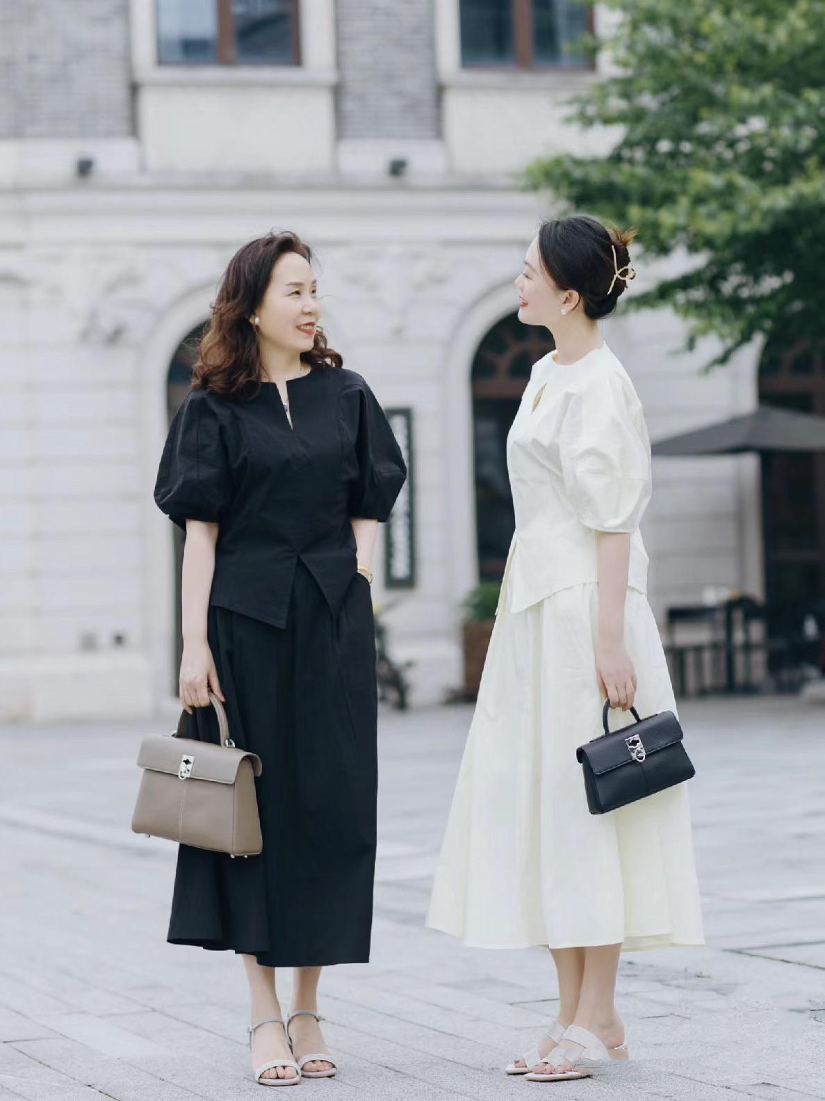 泡泡袖的黑色套裙,收腰的款式更加顯瘦。搭配一字帶的涼鞋,黑白配也更提氣質。一字帶的涼鞋,露出腳背肌膚、視覺上更顯輕盈。