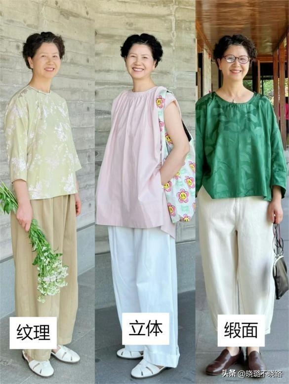 中年女人氣質感的細節呈現,可以從我們鬆緊適度的穿搭選擇來進行入手。上衣的領口部分可以適當的修身,而我們的衣袖和下襬的部分就要營造合適的穿搭空間,適當的放寬能夠對比出衣型的鬆緊對比效果,體驗出更加新鮮得體的視覺感。