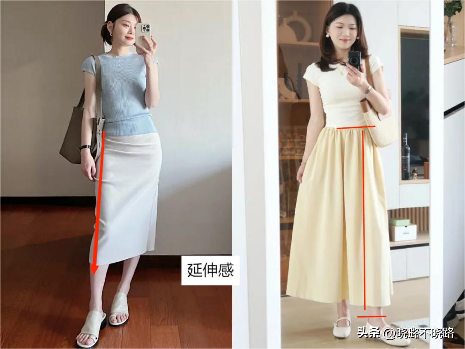 服裝要有足夠的長度,我們首先需要從裙子來進行入手。中年女人去穿裙子其實舒適性是很強的。一方面是裙子的下襬遮過膝蓋,可以包容你的身材問題,另一方面就是足額長度的裙裝面料,也可以讓我們保守的穿搭展示出得體的端莊感。