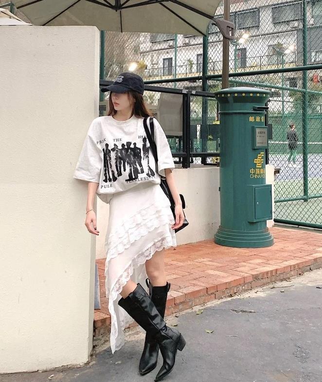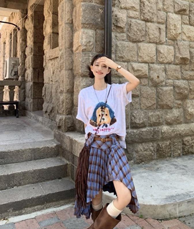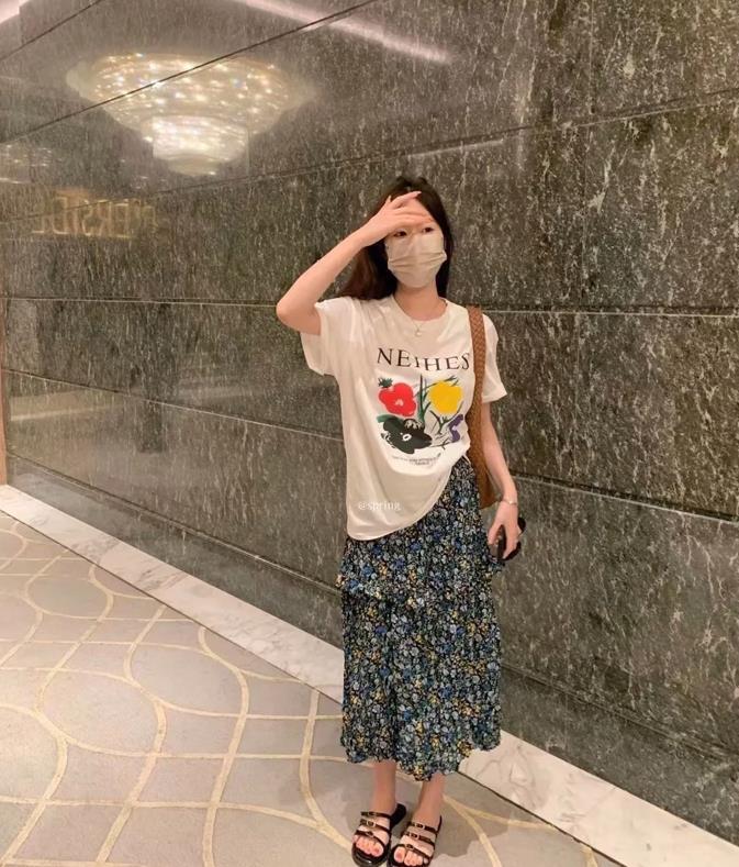 真的很喜歡這種鬆弛感的穿搭,有種說不出來的舒適和休閒,寬鬆的印花短袖t恤+白色半身長裙,上下都是寬鬆的版型,可藏肉顯瘦了。鞋子隨便配一雙板鞋就行,讓你穿得更休閒。