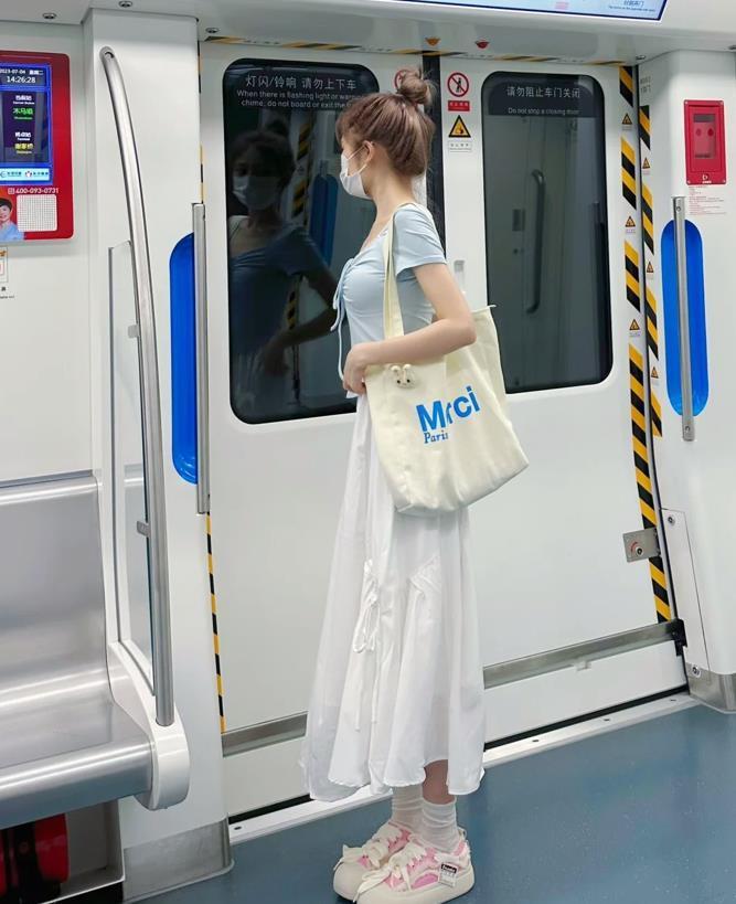 白色半身長裙看起來也太溫柔了,這個長度小個子女生也是可以駕馭的,提高腰線後,就不用擔心會壓低個子了,選擇短款t恤來配,上短下長的組合,很好優化整個身材比例,視覺上輕鬆顯高挑。
