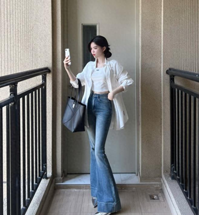 今年夏天,馬蹄褲又開始火起來了,這種褲子其實就是喇叭褲的升級版,牛仔款式的馬蹄褲,不僅經典百搭和耐看,還可以與各種上衣鞋子相配。想要讓你的穿搭看起來更休閒舒適一些,配一雙運動鞋就行了,有些韓範的穿搭。