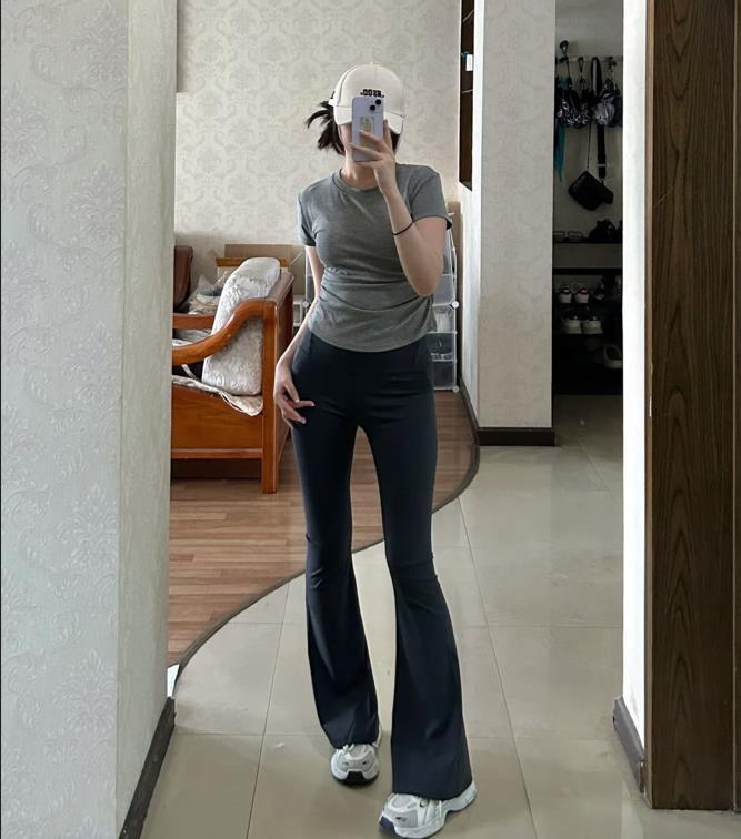 馬蹄褲這種褲子適合腿粗、腿型不直的身材,可以完美修飾下半身的比例,特別是小腿粗的身材,穿起來可是非常顯瘦的,其舒適度也很高。選擇修身的上衣搭配,整個身材比例就更加好了。