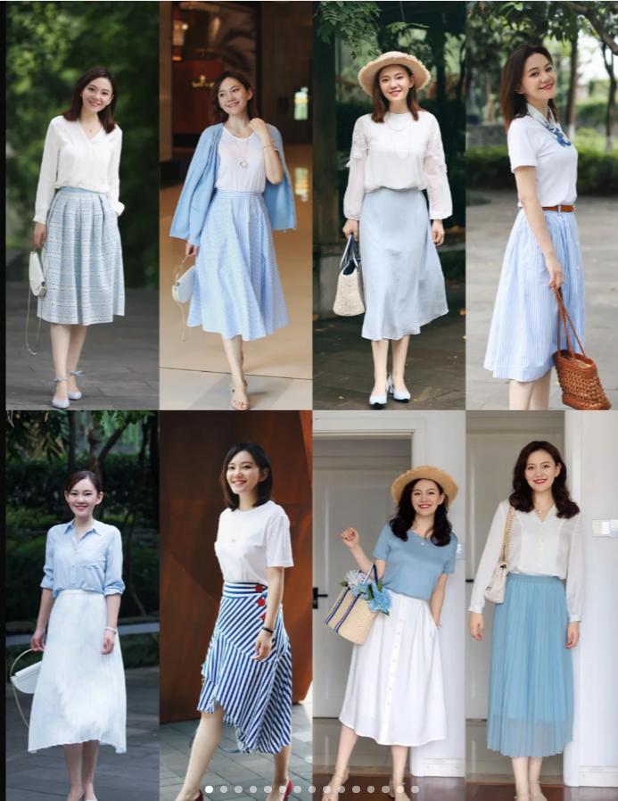 夏季色彩在穿搭上不必侷限於傳統的色彩選擇,只要顏色搭配得當,就能夠打造出既符合年齡又不失活潑的風格。比如這種奶呼呼的顏色組合,就很顯白。