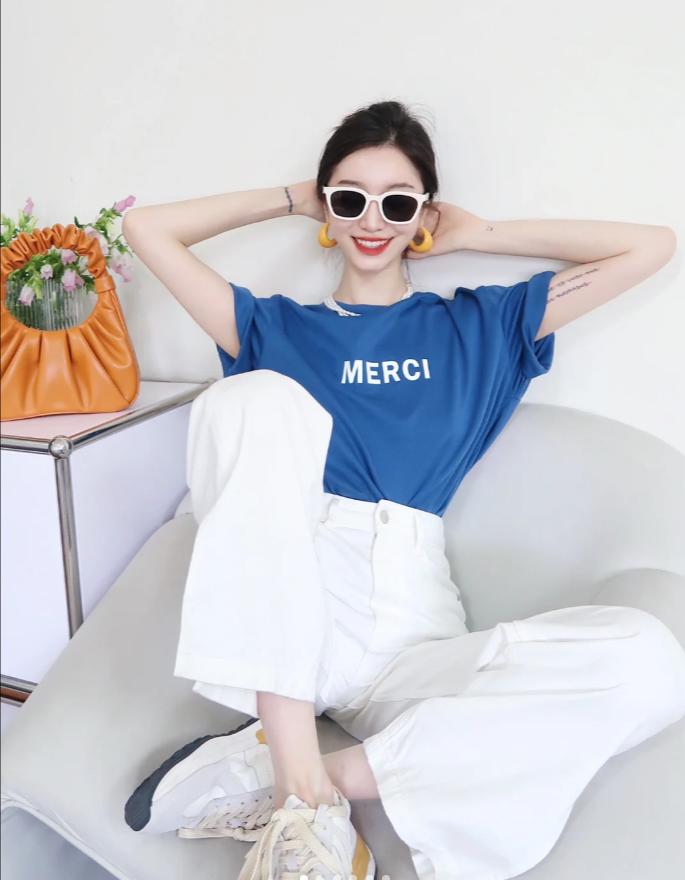 這種搭配簡單大方,適合日常穿着。可以選擇一件奶油黃色的T恤或襯衫,搭配一條白色的牛仔褲或白色A字裙。