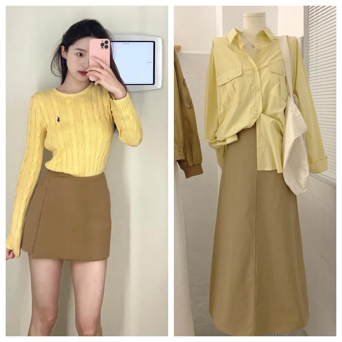 明亮黃與卡其的色彩組合適合休閒場合,能夠讓女性看起來更加年輕和充滿活力。