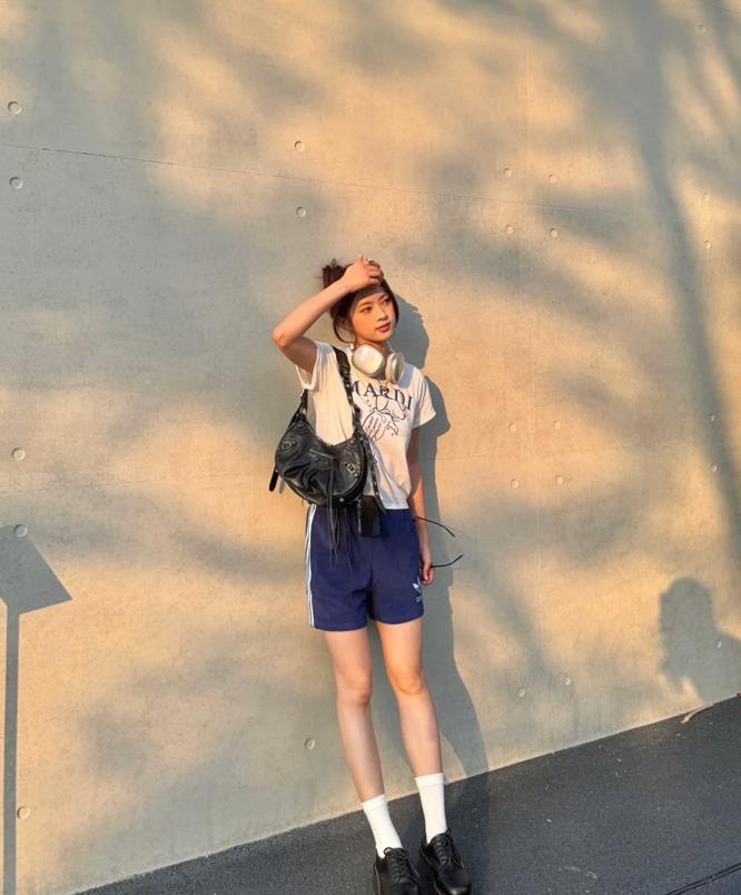 小個子女生的夏天穿搭,可以露腿就儘量露腿吧,當然,若是你腿型比例不好看的話,那就穿長褲或長裙,只要提高腰線,照樣是能打造出高挑感的。簡單的白色短袖t+運動短褲,舒適休閒又清涼。