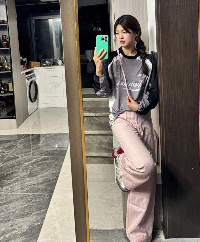 運動活力少女風,喜歡這種風格的姐妹們就借鑑起來吧,復古的球衣搭配粉色休閒長褲,這種運動混搭風也太出挑了。今年那麼流行粉嫩色調的單品,說什麼也要試試看,寬鬆的褲型,什麼腿粗、腿型不好看的都能輕鬆駕馭。