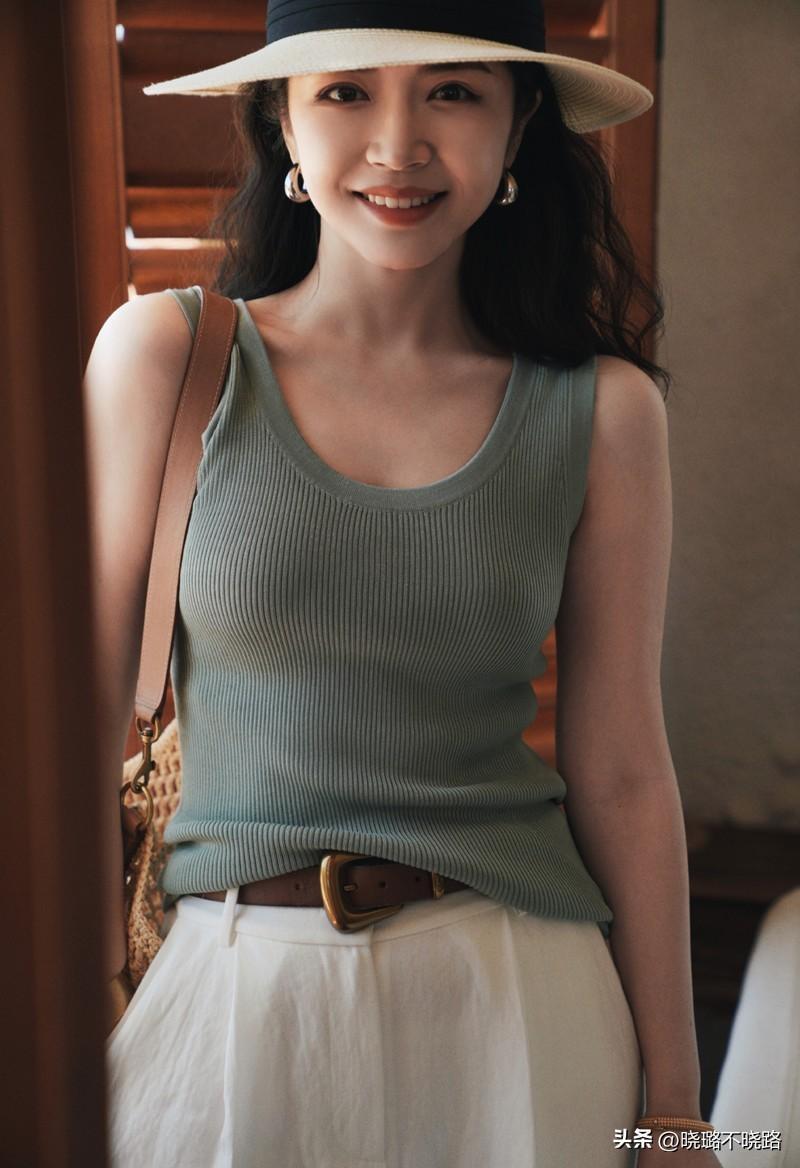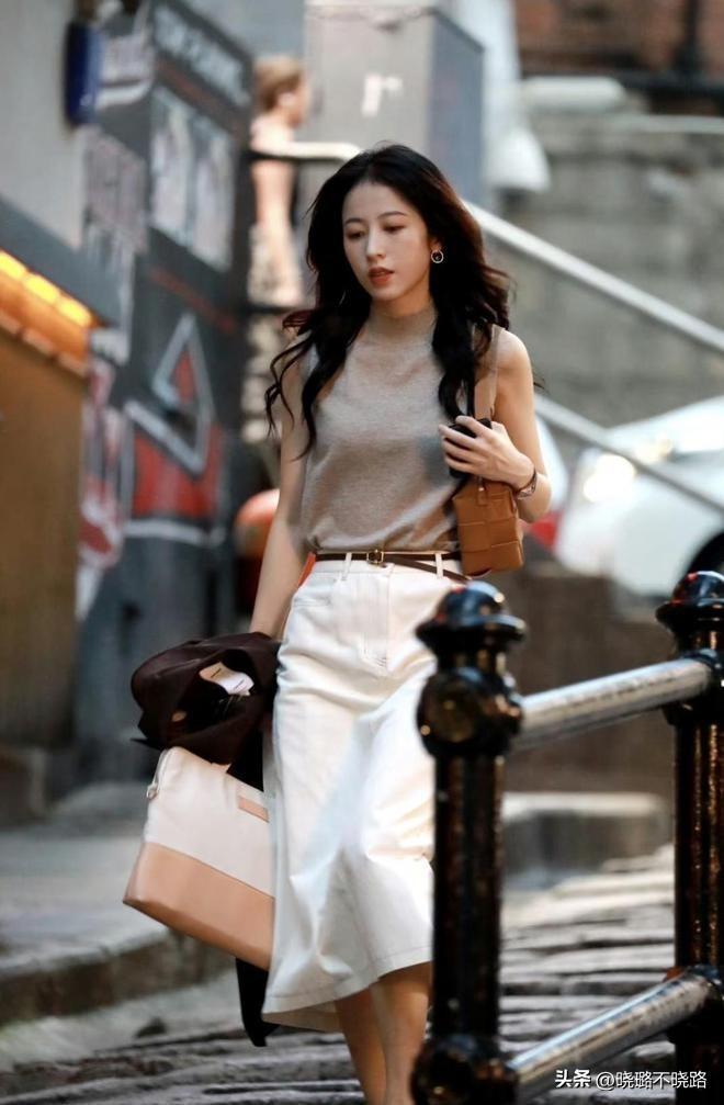 當全身的服裝版型都屬於比較修身的時候,將女性身型的線條感和魅力都展現出來。但是爲了避免一身都比較細條,沒有突出的立體感,學習用比較圓潤飽滿的配飾去充盈整體,比如這套修身背心搭配半裙,再用圓環型的耳環去突出的方式,我們第一眼就能很快看到雙耳的圓形耳環,同時又能襯托出整體纖瘦精緻的模樣,很登對。