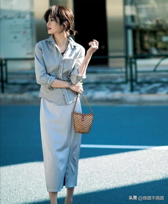 日式或者法式的鬆弛感,都是優雅派系比較典型的借鑑模板。而珍珠配飾又是詮釋優雅風格的極佳代表。襯衫搭配緞面感的裙子,再用珍珠配飾去點綴,舉手投足間散發的都是女人味。其實襯衫也很適合走優雅的路線,可以借鑑圖中用珍珠項鍊或者其他珍珠材質的配飾都好,點綴起來會會顯得非常精緻。